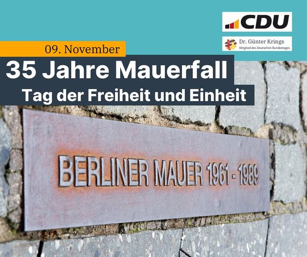 Für uns als CDU ist der 9. November ein Tag des Dankes, der Erinnerung und der Verantwortung. Wir sind dankbar für das Geschenk der Einheit und für das beherzte verantwortungsvolle Handeln unseres Kanzlers Helmut Kohl. Wir wissen, dass Freiheit und Demokratie keine Selbstverständlichkeit sind. Es ist unsere Aufgabe, diese Werte zu bewahren und für kommende Generationen zu verteidigen.
