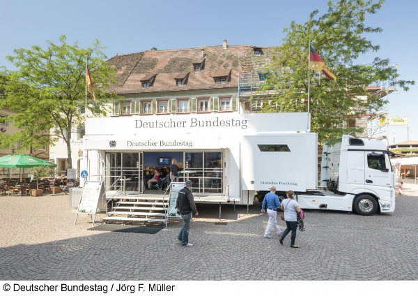 Das Infomobil ist bundesweit unterwegs, um den Bürgern Aufgaben und Arbeitsweisen des Parlaments näher zu bringen. Das Angebot umfasst eine Vielzahl von Informationsmaterialien zur kostenlosen Mitnahme. Schulen und Gruppen können sich für Vorträge anmelden. Das Infomobil verfügt über eine überdachte Bühne, einen Großbildschirm für die Vorführung von Filmen sowie Online-Zugänge u. a. zu den Seiten des Deutschen Bundestages.