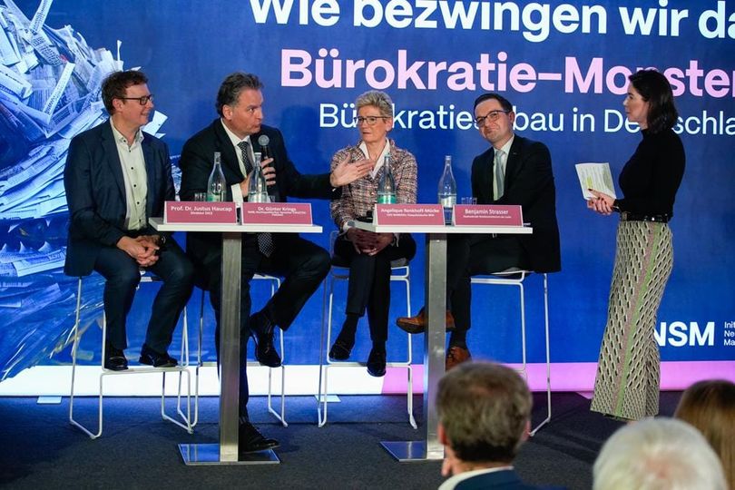 Wissenschaft und Wirtschaft teilen meine Meinung: Wir müssen dringend den Bürokratieabbau vorantreiben, um den Standort Deutschland zu stärken. Die Zeiten, in denen Krisen und Probleme nur mit viel staatlichem Geld "zugeschüttet" wurden, müssen dabei endgültig vorbei sein. Über das "Wie?" des Bürokratieabbaus habe ich gestern auf einer Veranstaltung der Initiative Neue Soziale Marktwirtschaft (INSM) diskutiert. Mit dabei: Der Parlamentarische Staatssekretär Benjamin Strasser, die Unternehmerin und BDA-Vizepräsidentin Angelique Renkhoff-Mücke und der Wirtschaftswissenschaftler Prof. Dr. Justus Haucap.