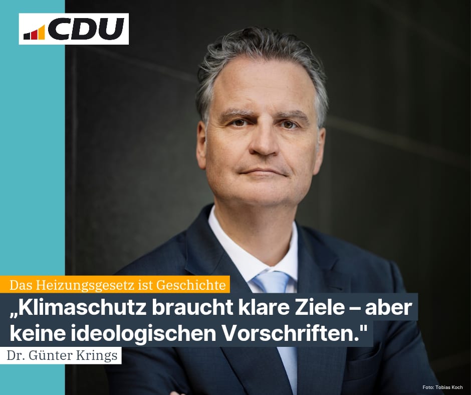 „Die Abschaffung des bisherigen Heizungsgesetzes ist ein wichtiges Signal für mehr Vernunft in der Klimapolitik. Klimaschutz gelingt nur, wenn die Menschen ihn mittragen – und Mittragen entsteht nicht durch Überforderung, sondern durch Planbarkeit und Fairness.“