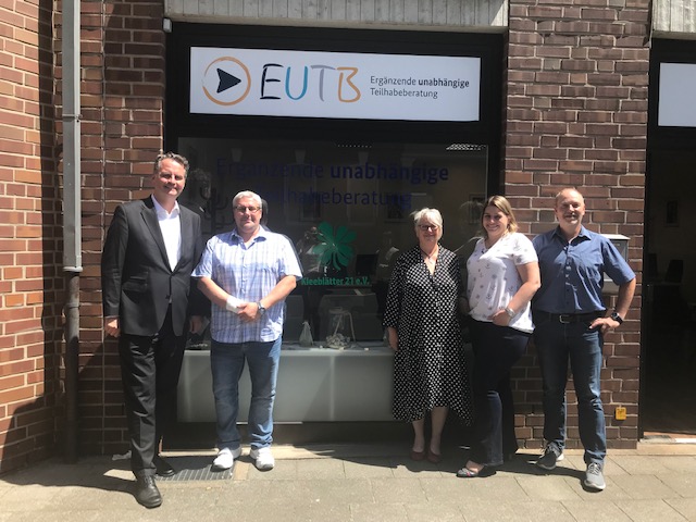 Die Elterninitiative "Kleeblätter 21 e.V." hat die Fördermittel des Bundes in Höhe von 447.168,22 Euro genutzt, um den Verein um die "Ergänzende Unabhängige Teilhabeberatungsstelle" (EUTB) für Menschen und Angehörige mit Trisomie 21 (Down-Syndrom) in unserer Stadt zu erweitern. Im Rahmen seiner Sommertour überzeugte sich der Mönchengladbacher Bundestagsabgeordnete Dr. Günter Krings (CDU) nun persönlich von der Arbeit in der Beratungsstelle an der Eickener Straße. "Gute Beratung steht bei der Unterstützung von Behinderten und ihrer Familien an erster Stelle", so der Abgeordnete. Hier biete die Einrichtung umfassende Hilfeangebote und beste Unterstützung.